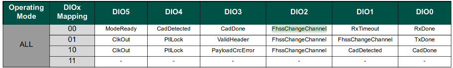 As per the datasheet some of the DIO interrupts can be mapped to different pins. This needs to be to taken into account.